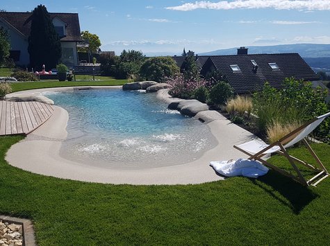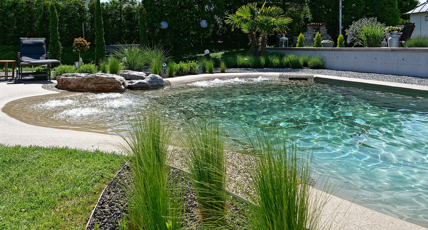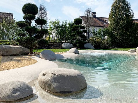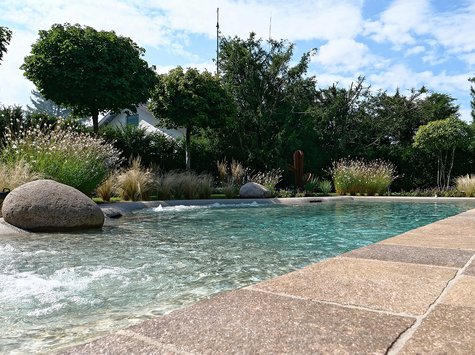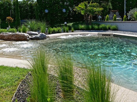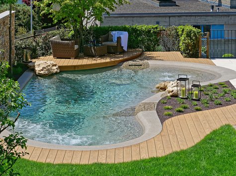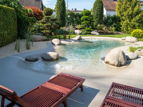Träumen Sie nicht auch von Ihrem persönlichen Stranderlebnis im eigenen Garten? Mit einem Biodesign Pool wird dieser Traum für Sie Wirklichkeit. Das innovative und natürlich anmutende Bade- und Wellnesserlebnis bietet Ihnen einladende Strandzonen zum Relaxen, individuell auf Sie abgestimmte Bade- und Schwimmbereiche sowie gemütliche Unterwasser-Liegen. Findlinge und eine harmonische Beleuchtung bringen einen zusätzlichen Touch Exklusivität in Ihren Garten. Fragen Sie uns - wir von Gassner Garten realisieren für Sie Ihren Biodesign Pool, speziell nach Ihren Wünschen!